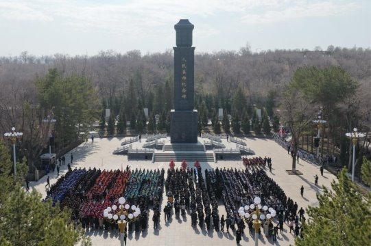 随后,全体人员参加了烈士陵园清明专场仪式。在庄严肃穆的革命烈士纪念碑前,大家整齐列队,齐声高唱中华人民共和国国歌。国歌唱毕,全体人员向为民族独立、人民解放和国家富强英勇献身的烈士们默哀致敬。少先队员代表献唱《我们是共产主义接班人》,清澈嘹亮的歌声表达了继承革命先辈光荣传统的坚定决心。伴随着深情的《献花曲》,现役解放军同志向烈士纪念碑敬献花篮,全体人员肃立致敬,表达对革命先烈的无限哀思与崇高敬意。
