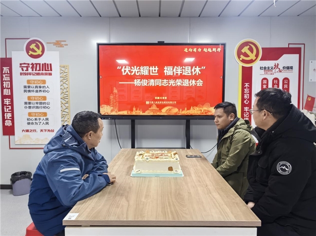 项目部以一份特别的蛋糕,向他致以最真挚的感谢与祝福。杨俊清爱岗敬业的铁军精神,已成为项目宝贵的精神财富。衷心祝愿他退休生活幸福安康,开启人生崭新篇章!